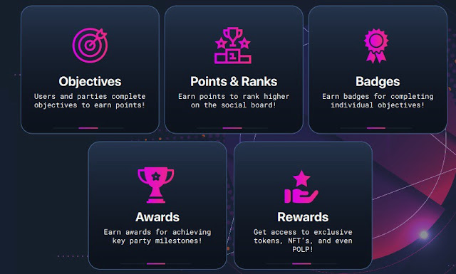 This Social Council will outline the competitive ranking of each party, as well as the party’s categorical growth in funds, members, activities. The platform will begin to grow organically in volume, users and overall activity, as well as competitive associations with each party. It is important to take advantage of this competitive spirit of Partygoers, as members will take great pride in their personal relationships with popular and well-liked parties. This distinct quality is the reason for Social Council, the exclusive dashboard for Partygoers to have fully accessible data based on the ranking, funding and growth of the most important parties on the platform.