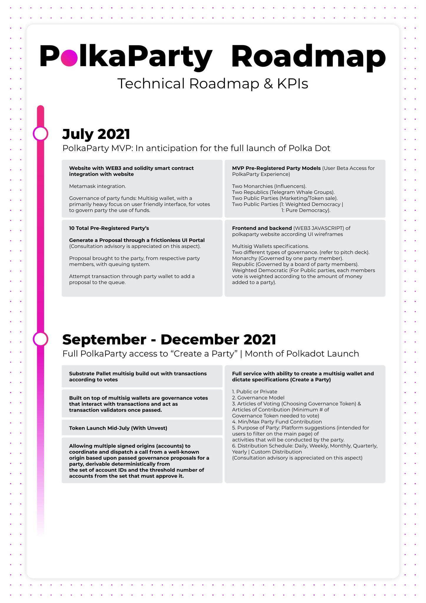 Read our entire documentation to learn more about PolkaParty, it’s tokennomics and governance system.